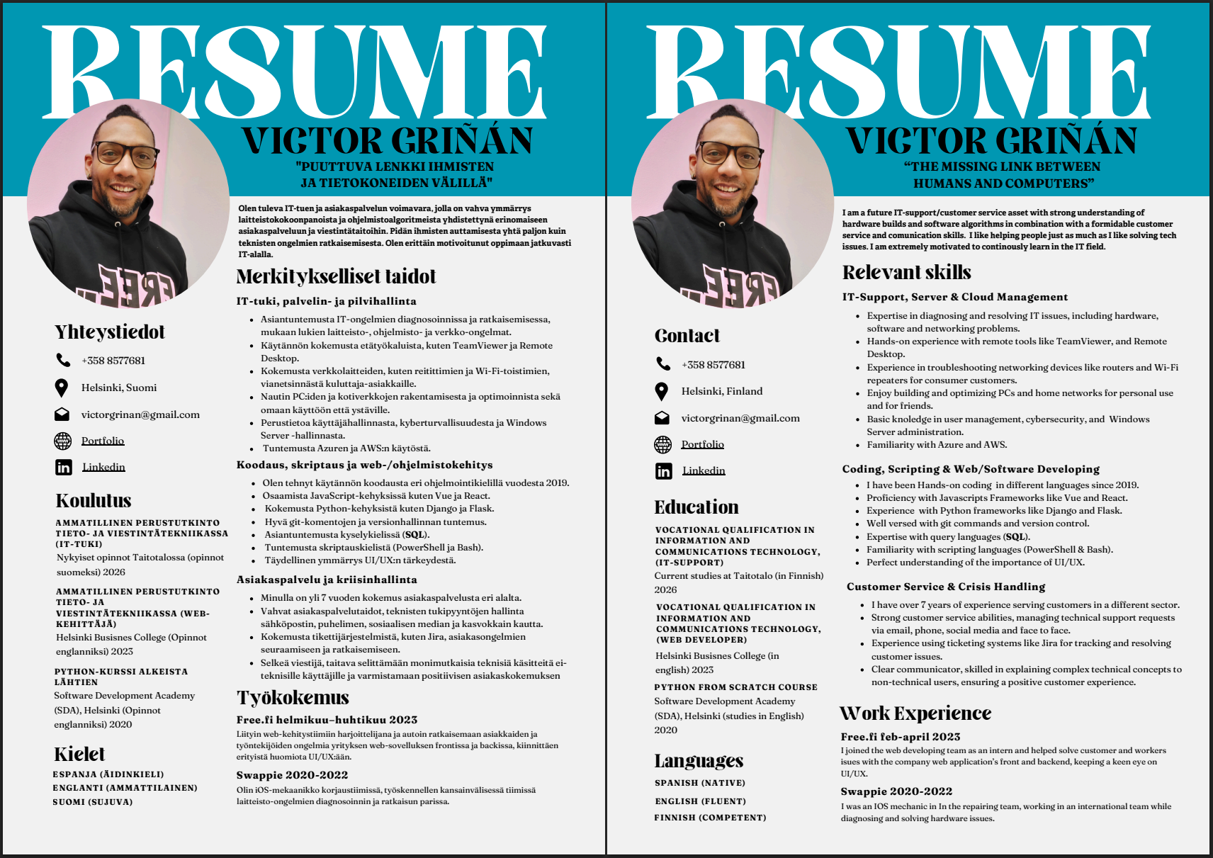 and perseverance. Now I'm studying to be IT-support staff at Taitotalo.